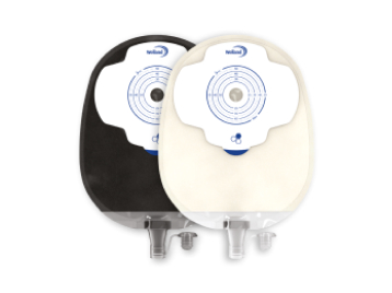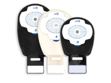 A colostomy pouch with a plus shaped flange for flexibility. Available in black or sand coloured in sizes from Mini to Maxi Plus.