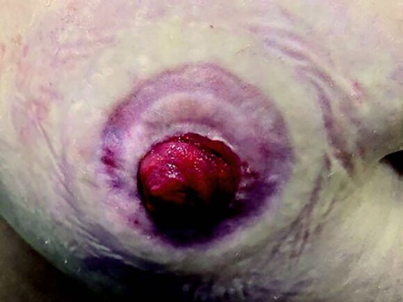 Mrs White was discharged with a flat backed stoma pouch and a convex washer but experienced leaks. Her stoma was flush to the skin, so she was sampled on a soft convex pouch. From this point, Mrs White experienced occasional leaks but adjusted well to life with a stoma, returning to her normal daily activities including travelling abroad. She experienced sore skin with this soft convex stoma pouch, managing this with stoma powder and skin barrier wipes. Following an appointment with her Stoma Care Nurse, a ring of erythema was noted around her stoma.