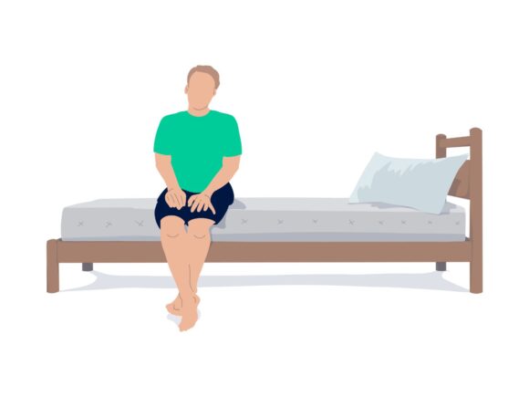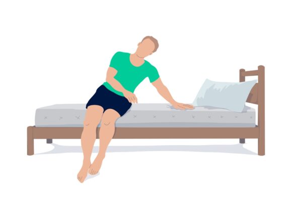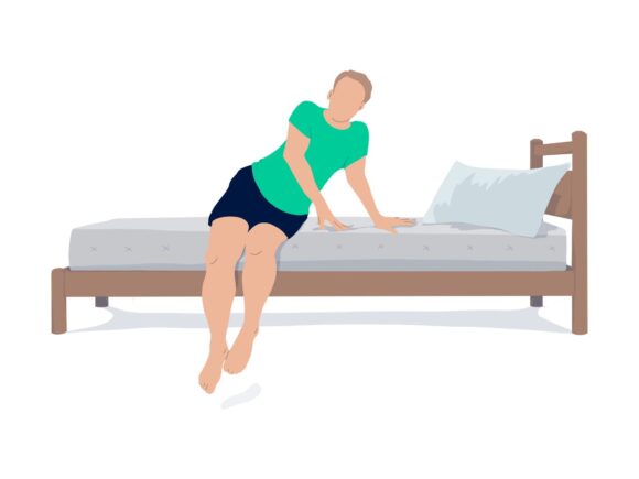 Sarah: Pause for a few seconds until you stand up from the bed keeping your core connected gently hinging at the hips and using your arm and leg muscles to push yourself into a standing position. Wait a moment before walking to make sure you’re not dizzy.